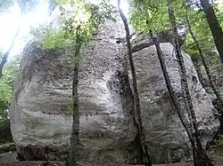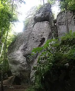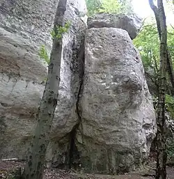 - Turnia z Dziurą (przylegająca do skał od południa odrębna turnia)[2].