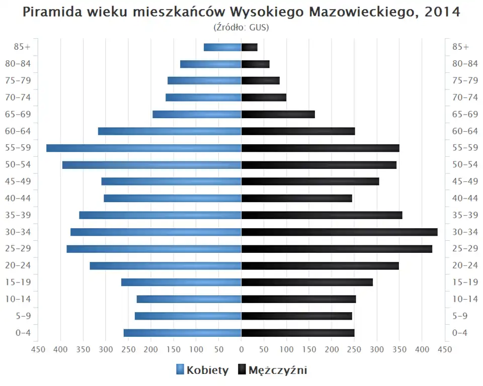 - ↑ Wysokie Mazowieckie w liczbach. Wysokie Mazowieckie – Dane demograficzne [online], Polska w liczbach [dostęp 2016-01-11], liczba ludności na podstawie danych GUS.