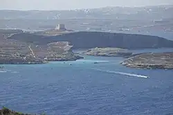 | Halfa Rock | 0,005 km²[8][9] | Położona koło Gozo. Maksymalna długość wynosi 95 metrów a średnia szerokość wynosi około 50 metrów. | ![]() |