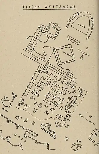 - ↑ Jakub Tyszkiewicz, Sto wielkich dni Wrocławia. Wystawa ziem odzyskanych we Wrocławiu a propaganda polityczna ziem zachodnich i północnych w latach 1945-1949, Wrocław 1997, s. 115-117.