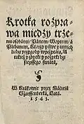 Krótka rozprawa między Panem, Wójtem a Plebanem | Mikołaj Rej | 1543 | Jedyny zachowany egzemplarz pierwszego wydania znanego dzieła jednego z mistrzów polskiego renesansu. |