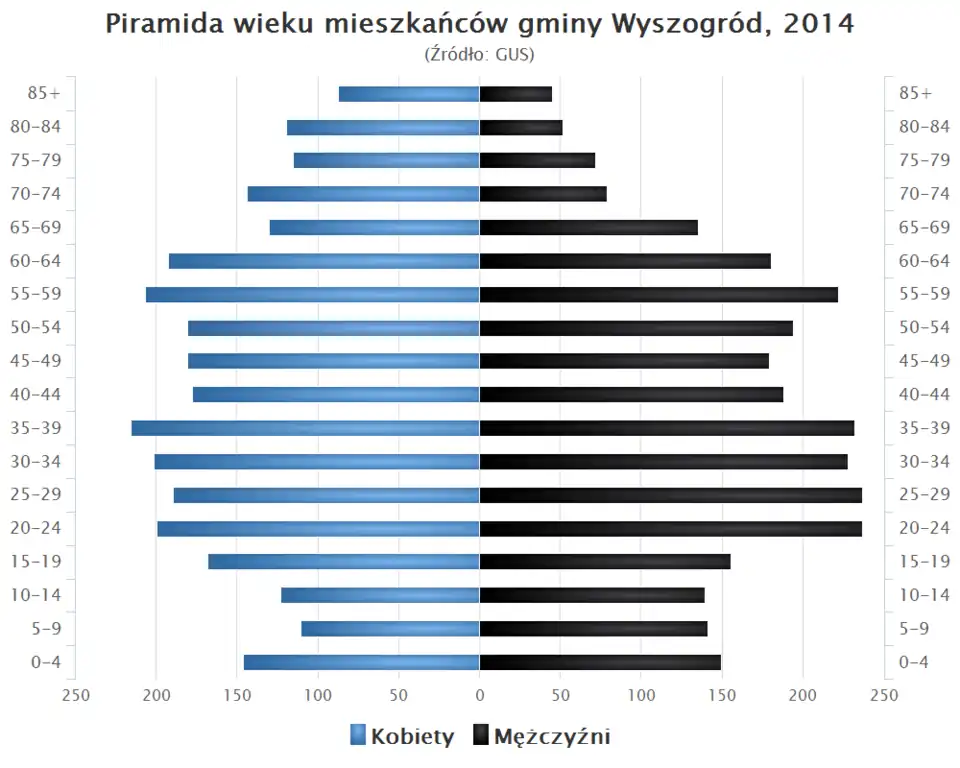 - Piramida wieku mieszkańców gminy Wyszogród w 2014 roku[7].