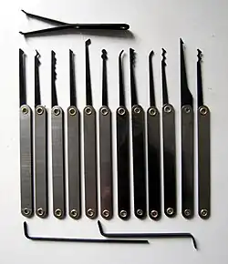 Wytrych – narzędzie służące do otwierania lub odblokowania zamków (w drzwiach, do samochodu, w szafkach itp.), używany w przypadku braku klucza przez ślusarza.