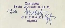 - szef wywiadu KOP - mjr piech. Jan Gurbski