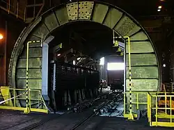 - unoszące i przenoszące wagony: wywrotnica mostowo-suwnicowa lub żuraw przenoszący i przechylający wagony