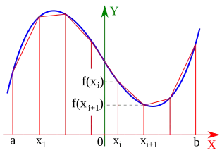Jeżeli przedział całkowania podzielony zostanie punktami na równych części o długościach i w figurę ograniczoną na prostymi osią odciętych oraz wykresem funkcji wpiszemy trapezy jak pokazano na rysunku poniżej,