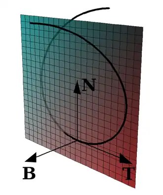 ![{\displaystyle {\begin{aligned}\mathbf {n} ^{'}&=-(\mathbf {t} \times \mathbf {b} )^{'}=-\mathbf {t} ^{'}\!\times \mathbf {b} -\mathbf {t} \times \mathbf {b} ^{'}\\[1ex]&=-{\frac {1}{\rho }}\,\mathbf {n} \times \mathbf {b} -{\frac {1}{\tau }}\mathbf {t} \times \mathbf {n} \\[1ex]&=-{\frac {1}{\rho }}\,\mathbf {t} -{\frac {1}{\tau }}\mathbf {b} =-\kappa \mathbf {t} -T\mathbf {b} .\end{aligned}}}](./e70e4b3599a487d7c1c7d51d155e88f531065a3c.svg)