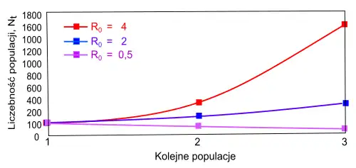 Przyjmując dodatkowo, że tempo reprodukcji netto nie ulega zmianom, otrzymuje się krzywe wykładnicze: