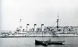 - ↑ Drugi niezatopiony podczas wojny krążownik pancerny „Asama” był już jedynie hulkiem bez napędu.