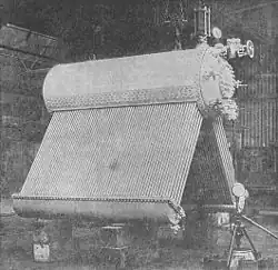 Jest to kocioł opłomkowy, stromorurowy, z naturalnym obiegiem wody, o trzech walczakach, dwóch dolnych po bokach paleniska i górnym z odbieralnikiem pary. Walczaki dolne z górnym są połączone ogrzewanymi wiązkami rur zwanych opłomkami. W późniejszych konstrukcjach stosowano od 2 do 5 walczaków.