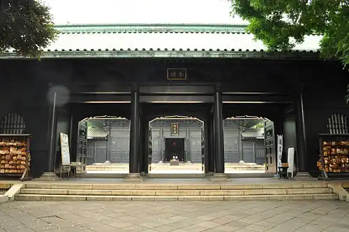 Świątynia powstała w okresie Edo jako konfucjańska świątynia Sensei-den zbudowana przez uczonego i nauczyciela czterech pierwszych siogunów z rodu Tokugawa, Razana Hayashi. Sensei-den znajdował się na terenie dzisiejszego parku Ueno, ale po śmierci Razana został przeniesiony do obecnej lokalizacji przez piątego sioguna Tsunayoshi Tokugawę w 1690 roku.