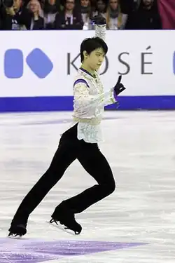 ![]() Hanyū podczas Zimowych Igrzysk Olimpijskich 2018 | |||||||||||||||||||||||||||||||||||||||||||||||||||||||||||||||||||||||||||||||||||||