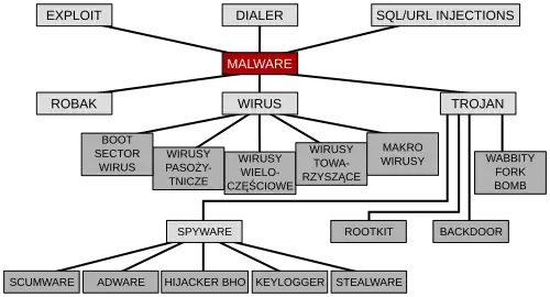 - ↑ malware – tłumaczenie na polski. [w:] Słownik angielsko-polski [on-line]. bab.la. [dostęp 2017-12-23].
