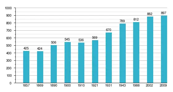 Ludność na podstawie spisów powszechnych, w 2009 roku, według PESEL[14][15][16][17].