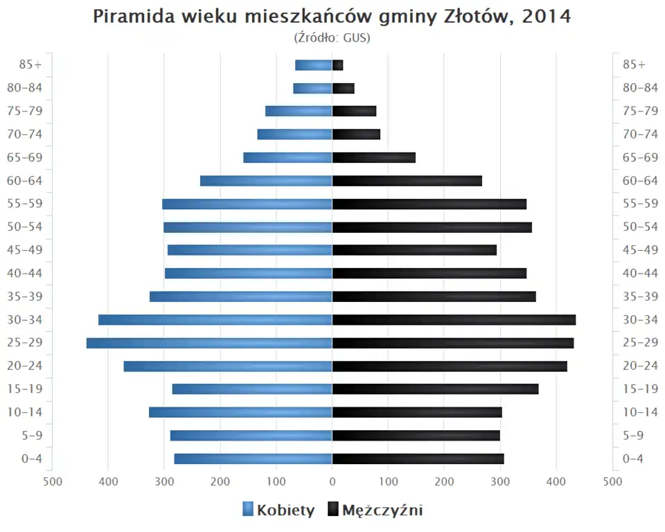 • Piramida wieku mieszkańców gminy Złotów w 2014 roku[1].