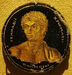 - ↑ Gold-glass skyphos (drinking cup) fragment, Metropolitan Museum of Art.