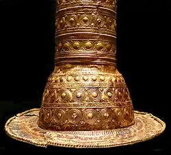 Złoto jest znane i używane przez rzemieślników co najmniej od chalkolitu. Złote wyroby na Bałkanach pojawiają się w wykopaliskach archeologicznych datowanych na IV tysiąclecie p.n.e., takich jak cmentarzystko w Warnie. Złote artefakty, takie jak złote kapelusze czy dysk z Nebry, pojawiały się w Europie Środkowej od drugiego tysiąclecia p.n.e. w epoce brązu[10].