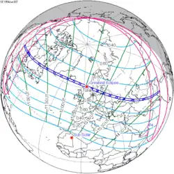 Zaćmienie Słońca z 30 czerwca 1954 – całkowite zaćmienie Słońca o magnitudo 1,0357 z Księżycem przechodzącym przez węzeł zstępujący orbity.