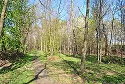 - Od południa – wzdłuż ulicy Brygadzistów[9] i dalej na zachód przez Las Załęski[1],