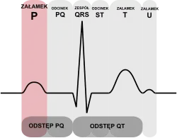 - ↑ Poniższe grafiki są jedynie schematami nieoddającymi w sposób szczegółowy poszczególnych zależności i proporcji pomiędzy składowymi zapisu EKG. Ich celem jest jedynie zaznaczenie wyglądu poszczególnych patologii dotyczących załamka P. W przypadku trzepotania i migotania przedsionków nie ukazano występujących w tym przypadku zespołów QRS.