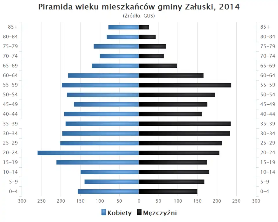 - Piramida wieku mieszkańców gminy Załuski w 2014 roku[8].