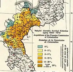 Władze zaborcze wydały ustawy skierowane przeciwko zakładaniu przez osoby deklarujące język polski nowych gospodarstw oraz zakazały używania języka polskiego na zebraniach. Osoby te stawiały opór zaborcy, czego przykładem jest strajk szkolny we Wrześni w 1901 r. Powodem jego ogłoszenia była zmiana języka polskiego na niemiecki na lekcjach religii. W historiografii polskiej zapisała się postać Michała Drzymały, któremu władze pruskie nie pozwoliły wybudować domu (1904). Nabył on ziemię we wsi Podgradowice i zamieszkał w wozie cyrkowym. Władze zaborcze „ze względów bezpieczeństwa” kazały mu usunąć wóz, ale dzięki składkom ludzi zakupiono nowy. Po pięciu latach Prusacy zmusili Drzymałę do opuszczenia także i tego lokum. Osiedlił się wówczas w ziemiance. Jego postawa stała się symbolem walki z germanizacją.