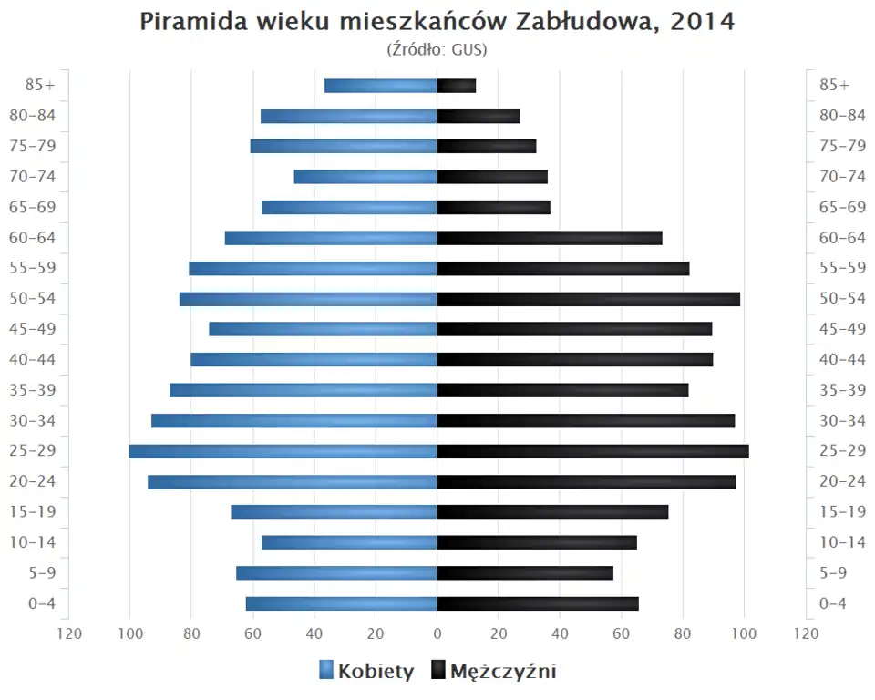 - Piramida wieku mieszkańców Zabłudowa w 2014 roku[14].