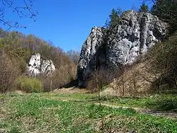 – z Zabierzowa przez Las Zabierzowski, Kleszczów, Brzoskwinię Dolinę Brzoskwinki, wąwóz Półrzeczki, Dolinę Mnikowską do Mnikowa.