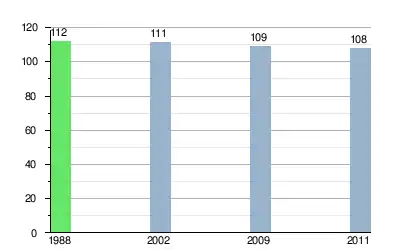 Liczba mieszkańców w latach (dane ze spisu powszechnego w 1988 według stanu jednostek terytorialnych z 1 stycznia 1998)