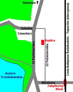 Zbudowana w 1929 roku przy obecnej ulicy 22 października. Kaplica jest drewniana, pomalowana na kolor czarny. Ma malutką wieżę, na której znajduje się mały dzwon. Wyglądem przypomina góralską chatę.