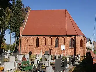 • Kościół św. Jana (niem.) St. Johanniskirche (obecnie parafialna cerkiew prawosławna pw. Zaśnięcia Przenajświętszej Bogurodzicy) – obiekt sakralny wybudowany w latach 1911–1913, w miejscu dawnego ryglowego, który pochodził z 1851 r. Kościół ten powstał, jako staroluterański, zbudowany w stylu neogotyckim na planie krzyża łacińskiego. W latach 1946–1954 spełniał funkcję kościoła katolickiego pw. św. Stanisława Kostki. W 1954 r. został przejęty przez prawosławnych. W tym samym roku powołano przy nim parafię[11]. Jako jedyna cerkiew w Polsce do 2009 r. nie posiadała ikonostasu (nr rej. A-1088 z 28 maja 1988 r.);
