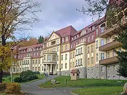 Budynki użytkuje Szpital Gruźlicy i Chorób Płuc. Zabudowania powstały w latach 1900–1902 według projektu wrocławskiego architekta Karla Grossena. Grossen wzorował się na zbliżonym wizualnie obiekcie w szwajcarskim mieście Davos. Budynek prezentuje typ zabudowy szachulcowy z licznymi wieżyczkami, werandami i tarasami oraz zegarem. Budynek stoi w otaczającym go parku.