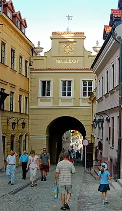 - Brama Grodzka, zwana też Żydowską – brama miejska prowadząca z zamku na Stare Miasto, kolejna pozostałość pierwszych murowanych elementów obwarowań Lublina, wybudowanych w 1342 roku, po zezwoleniu Kazimierza Wielkiego.