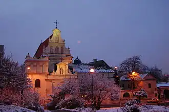 - klasztor – od południa do bazyliki przylega kompleks klasztorny, z dwoma wirydarzami, z pochodzącą z wieku XIV częścią wschodnią, mieszczącą m.in. wspartą na jednym filarze „Salę Unii” – dawny refektarz klasztorny, rozbudowywany w wiekach XVI-XVIII. Według podań w roku 1569 w sali tej podpisano akt unii lubelskiej.