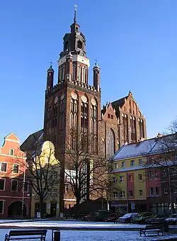 - Kościół św. Jana powstał w I połowie XV wieku w wyniku rozbudowy kaplicy wzniesionej wcześniej przez joannitów. Jest to kościół halowy wieńcem kaplic i ambitem. W nawie głównej znajduje się sklepienie gwiaździste (jedyne na Pomorzu). W latach 1540 i 1697 wichury niszczyły hełm wieży. Obecna pochodzi z 1892, mierzy 99 m i jest jedną z najwyższych wież na Pomorzu. W wyniku wojny kościół stracił wiele cennych zabytków (m.in. poliptyk świętojański i ambonę) z oryginalnego wyposażenie pozostały organy z 1731 roku oraz piętnastowieczne stalle.