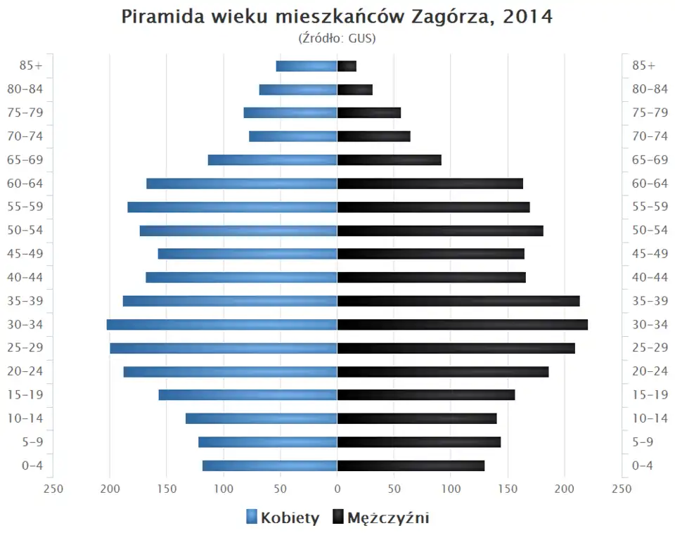 - Piramida wieku mieszkańców Zagórza w 2014 roku[21].