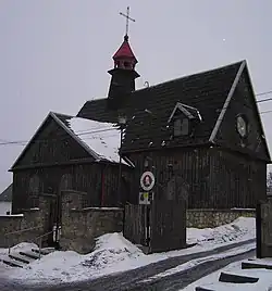 - ↑ Roman Mirowski: Drewniane kościoły i dzwonnice Ziemi Świętokrzyskiej. Kielce: Regionalny Ośrodek Studiów i Ochrony Środowiska Kulturowego, 2002. ISBN 83-88912-15-1.
