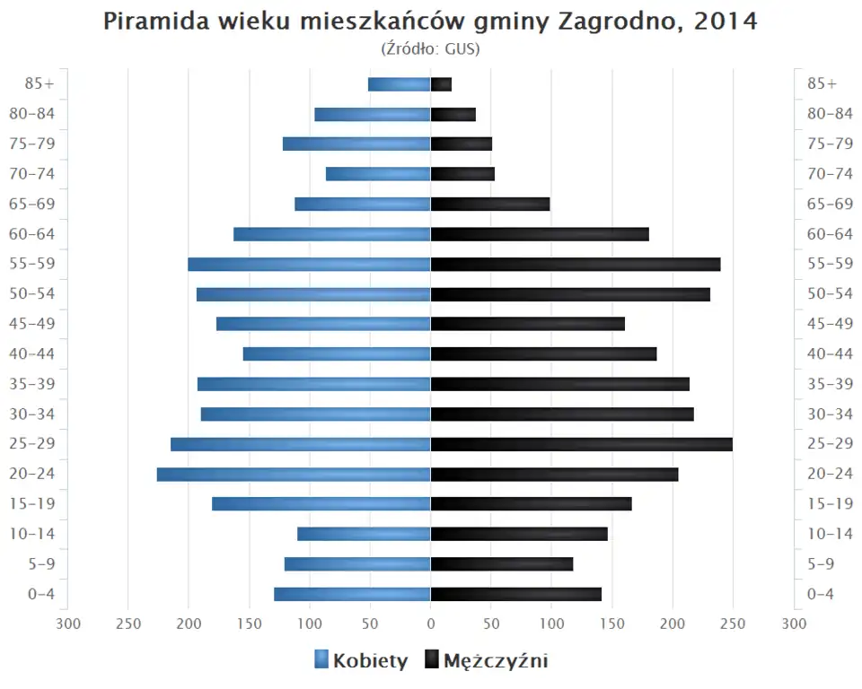 - Piramida wieku mieszkańców gminy Zagrodno w 2014 roku[1].