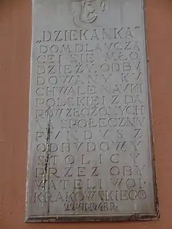 W 1944 r. podczas akcji niszczenia stolicy przez wojska niemieckie, Dziekanka została spalona. Zniszczenia budynku szacowano po wojnie na ok. 85%[2]. W 1946 r. rozebrano tylną ścianę budynku frontowego, która najbardziej ucierpiała wskutek pożaru.
