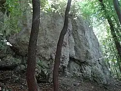 Zbudowany z wapienia Zaklęty Bastion znajduje się w lesie. Ma połogie, pionowe lub przewieszone ściany o wysokości 10–14 m z filarem, kominem i zacięciami[3].