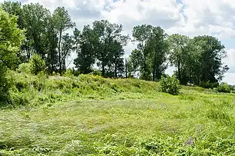 - ↑ Porównanie mapy z zaznaczonym rowem[16] z granicą tarasów[15].