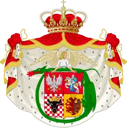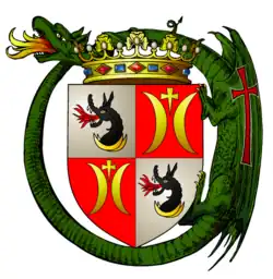 Herb Władysława Jagiełły z insygniami kawalera Orderu Smoka