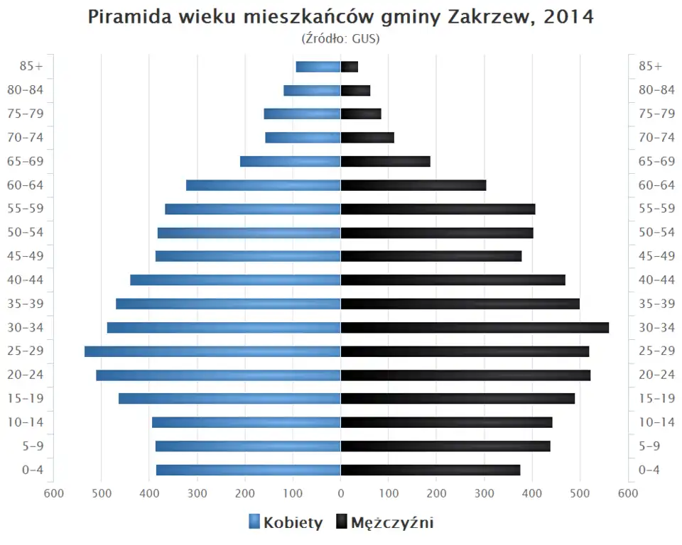 - Piramida wieku mieszkańców gminy Zakrzew w 2014 roku.[10]