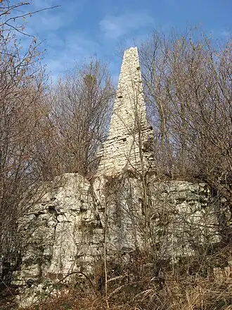 Wzniesienie uchodzi za jedno z najciekawszych miejsc regionu. Nazwa góry wywodzi się od pięciometrowego, kamiennego obelisku, zbudowanego w kształcie ostrosłupa, znajdującego się na jej szczycie. Upamiętnia on przejęcie Śląska przez Prusy i pochodzi ze schyłku XVIII w.[1] Niegdyś stanowiła doskonały punkt widokowy na całą okolicę, a przy dobrych warunkach pogodowych nawet na Góry Opawskie. Obecnie, ze względu na porastający las i krzewy, obelisk jest ciężko spostrzec a widoczność ze szczytu ogranicza się do pobliskich drzew. Tuż za kamiennym ostrosłupem znajdują się pozostałości wieży obserwacyjnej z czasów II wojny światowej. Na górze znajdują się dwie odkrywki wapieni środkowotriasowych, tzw. formacji górażdżańskiej[1].