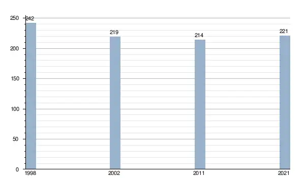 | Populacja | 221 | 100 | 102 | 46,15 | 119 | 53,85 |