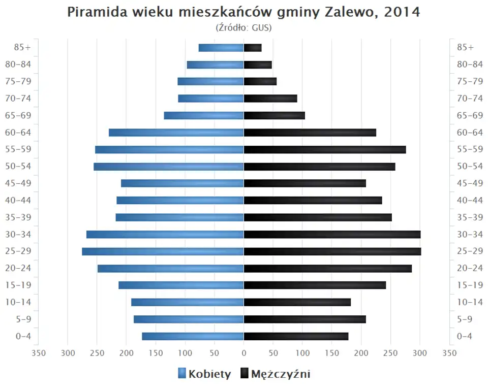 - Piramida wieku mieszkańców gminy Zalewo w 2014 roku[1].