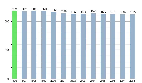 Według danych z dnia 31 grudnia 2012, wieś zamieszkiwało 1137 osób, w tym 598 kobiet i 539 mężczyzn[6].