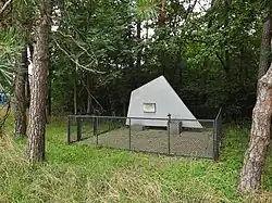 W tym miejscu dnia 11 lipca 1944 roku grupa dywersyjna Armii Krajowej wykonała wyrok na gestapowcu krwawym kacie w byłym powiecie buskim w odwet za zbrodnie popełnione na partyzantach AK BCh i ludności cywilnej w latach okupacji hitlerowskiej.