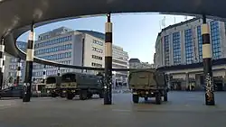 - 9:27 – Cały transport publiczny w mieście zostaje zawieszony[37].