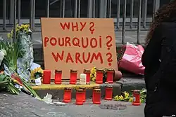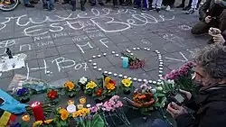 - ↑ Riot at Brussels attacks shrine; 13 anti-terror raids made. Northwest Herald, 28 marca 2016. [dostęp 2016-04-01]. [zarchiwizowane z tego adresu (2016-03-29)]. (ang.).